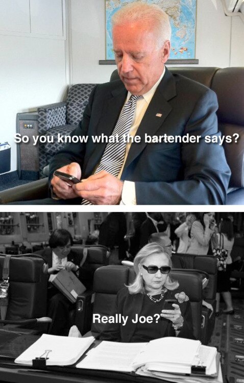 Here, Hillary reminds Joe Biden to get back to doing what he does best, whatever that is...